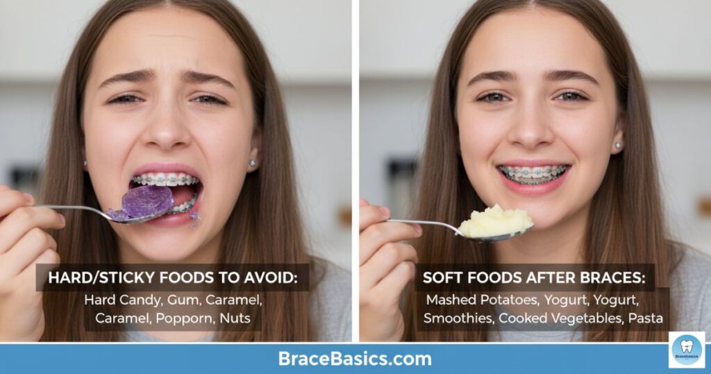 Foods like caramel, taffy, nuts, and ice stress newly freed teeth. Eating these items can cause teeth shifting prevention issues and enamel damage. Soft foods after braces are safer and encourage recovery.